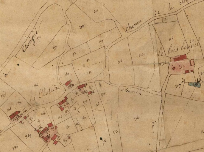 La ferme dessinée sur le 'cadastre napoléonien' en bas à gauche sur l'imageImmatriculation