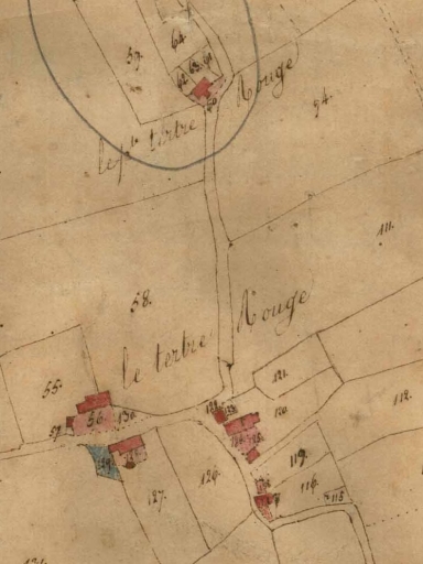 La ferme dessinée sur le 'cadastre napoléonien' parcelle 128Immatriculation