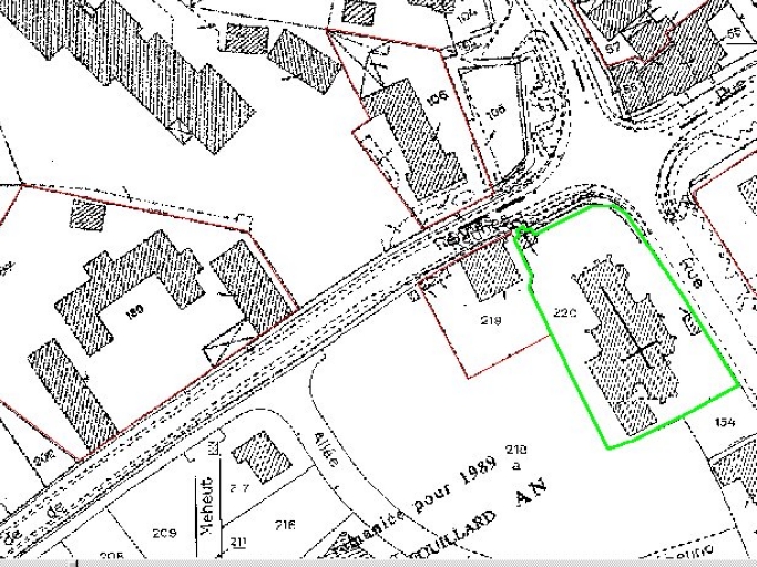 En vert, plan de situation sur le cadastre moderneImmatriculation
