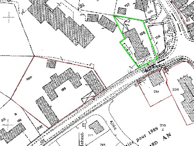En vert, plan de situation sur le cadastre moderneImmatriculation