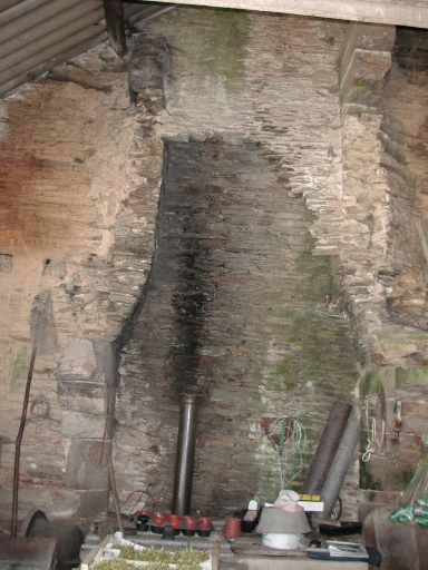 Détail : vestiges des cheminées superposées de l'ancien manoir
