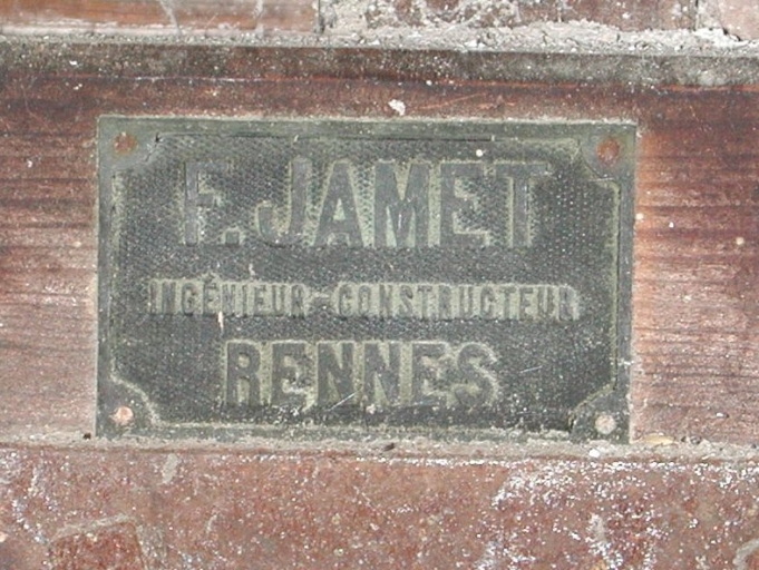 Détail : machine à cribler, marque de constructeur : F. Jamet à RennesImmatriculation