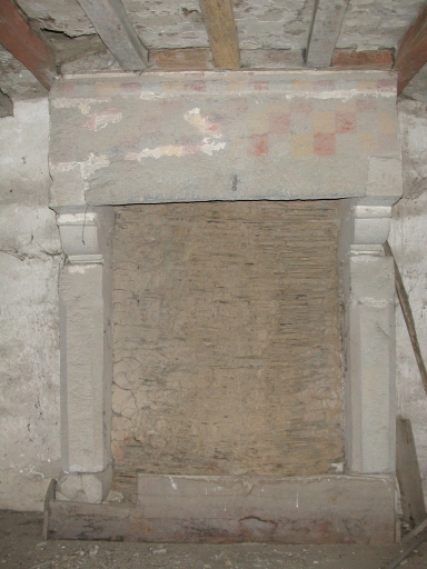 Intérieur de l'aile nord-est : la cheminée avec traces de décor polychromeImmatriculation