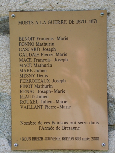 Premier édicule : plaque commémorant les morts de la guerre 1870-1871Immatriculation