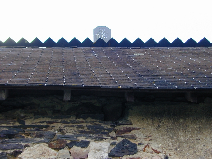 Ardoise portant la date de la réfection de la toiture : détailImmatriculation