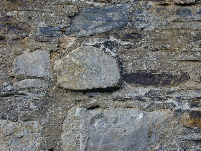 Pierre gravée d'une date enchâssée dans la façade : détailImmatriculation