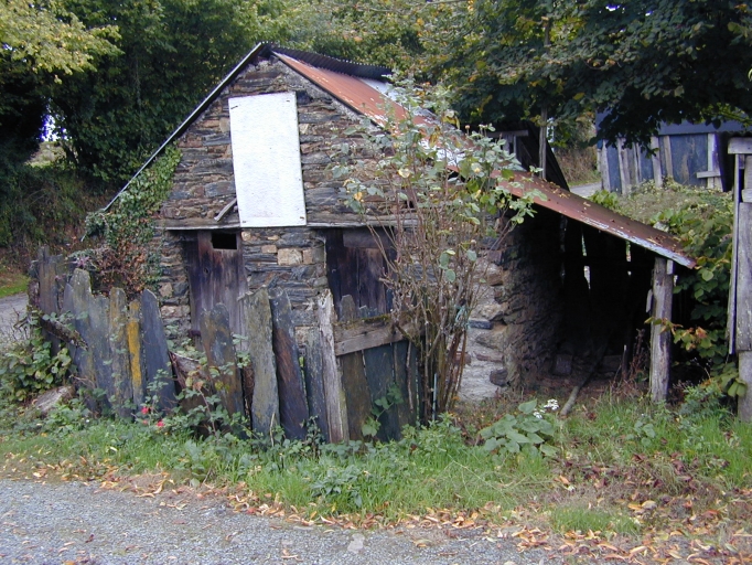 Une soue à porcs avec son enclos de palis : vue générale estImmatriculation