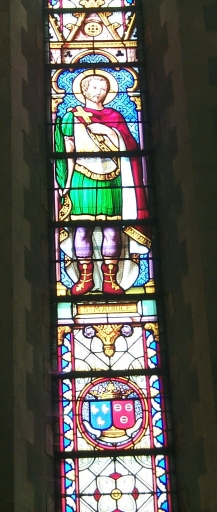 Ensemble des verrières à personnages des baies 0 à 4, 7, 8 : Vierge à l'Enfant, sainte Elisabeth, saints André, Jean-Baptiste, Maurice, Fiacre et Joseph,