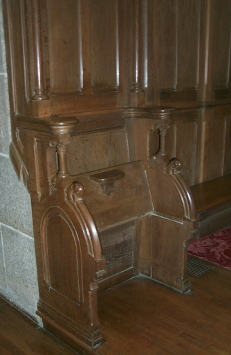 Décor de choeur : lambris de demi-revêtement, 2 stalles, 5 bancs de choeur,