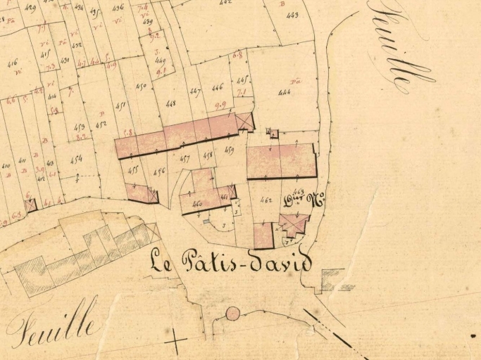 Extrait du cadastre de 1847, partie nord du hameauImmatriculation