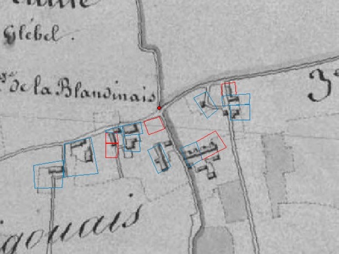 Les ouvrages recensés projetés, en haut à droite, sur le cadastre de 1847Immatriculation