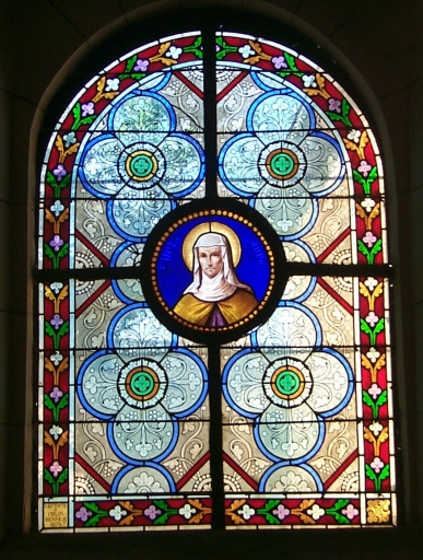 Ensemble des verrières à personnages des baies 1 à 8, 10 : saint Joseph, sainte Anne, saint Convoyon, saint Jean-Baptiste, Vierge de douleur, saint Pierre,