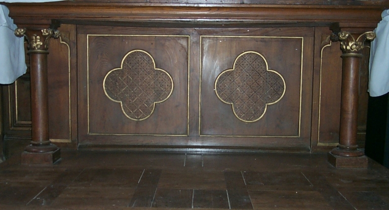 Ensemble de l'autel de la Vierge : autel, tabernacle, retable, 2 gradins d'autel, 2 degrés d'autel,