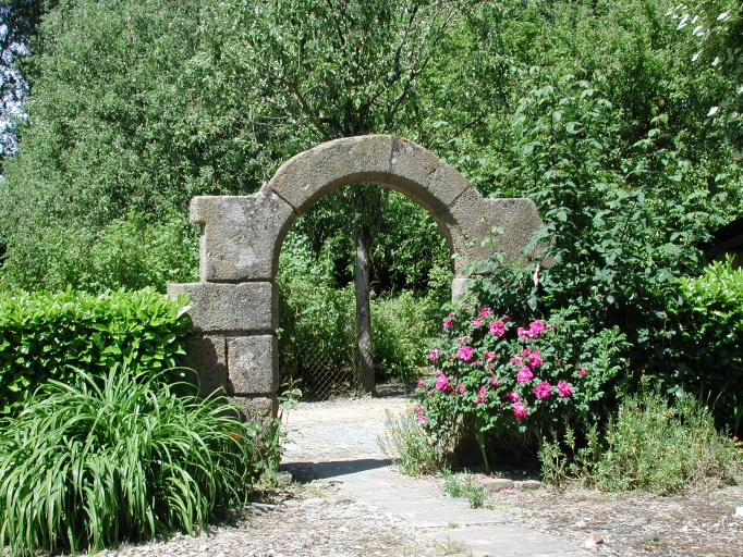Porte déposée du manoir entreposée dans le jardinImmatriculation