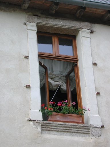 Façade antérieure du logis, détail fenêtre de l'étage (état actuel)Immatriculation