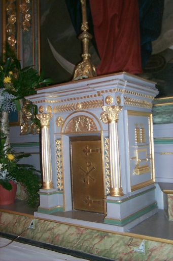 Ensemble du maître-autel : autel, 2 gradins, tabernacle, retable, 3 degrés,