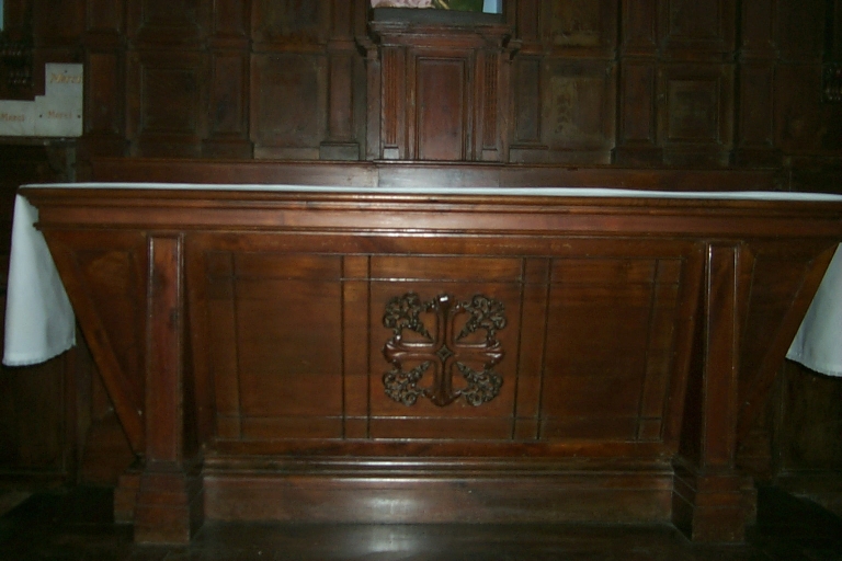 Ensemble de l'autel secondaire nord : autel, gradin, tabernacle, retable, 2 degrés,