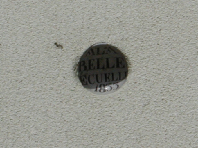 Façade sur rue, détail : écuelle incrustée dans le gros oeuvreImmatriculation