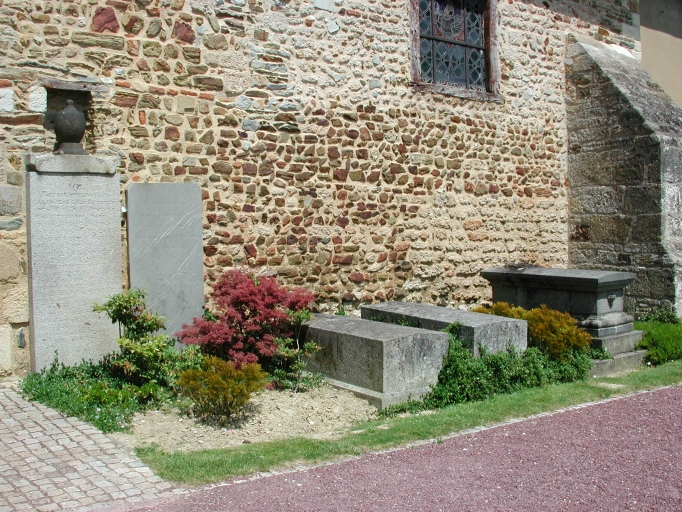 Ensemble de pierres tombales déposées contre le mur sud de la nef. Tombes des familles Grallan et du BourblancImmatriculation