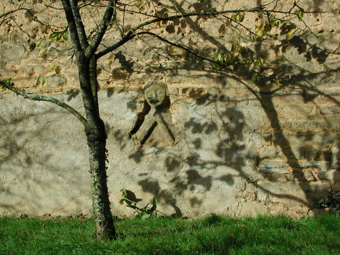Elément sculpté en remploi dans le pignon de la grangeImmatriculation
