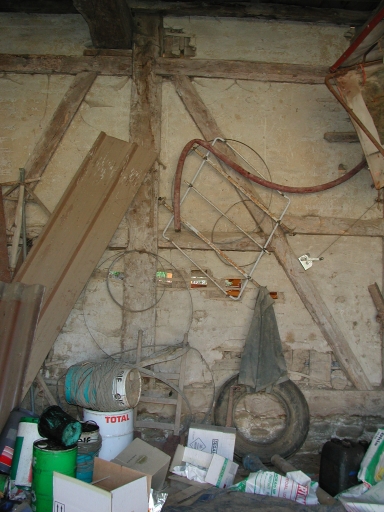 Grange en pan de bois ; bâtiment à l'est ; détail, vue intérieureImmatriculation