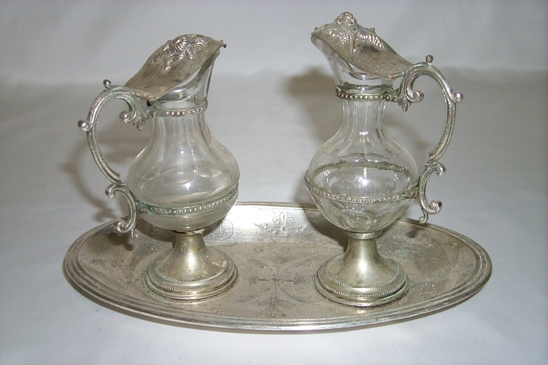 Paire de burettes et leur plateau,