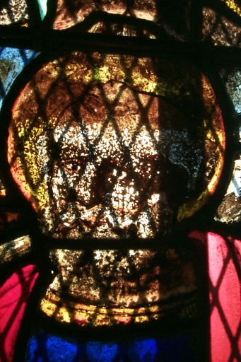 Verrière portant saint Pierre : détail de la tête de PierreImmatriculation