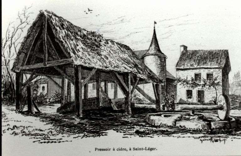 La halle et le pressoir à cidre sur une gravure du début du XIXe siècleImmatriculation