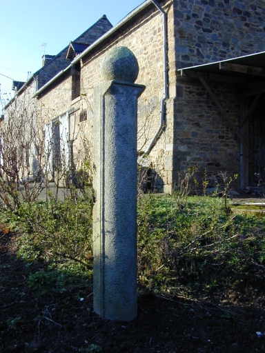 Pilier d'entrée de la cour provenant de Launay Chartier en Cuguen : vue générale sud-estImmatriculation