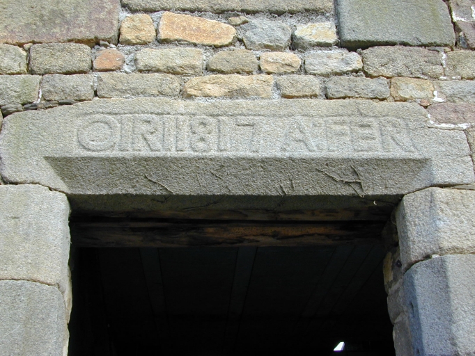 Porte du logis, linteau épigraphique : détailImmatriculation