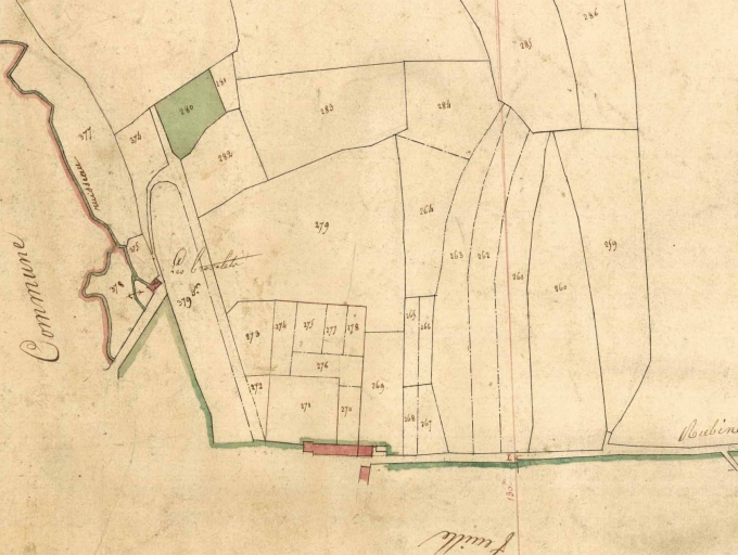 Extrait du cadastre de 1826 ; l'étang et le moulin à eau (détruit)Immatriculation