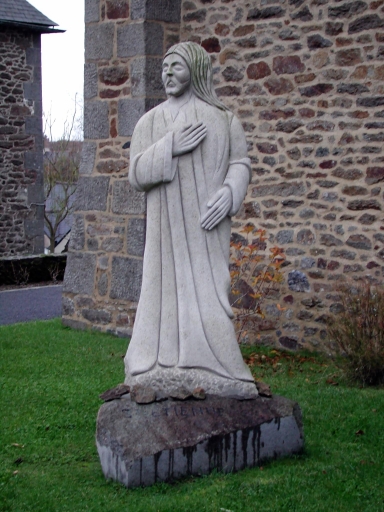 Statue de saint Etienne placée dans l'enclos paroissiale, signée 'ROUVRE 96'Immatriculation