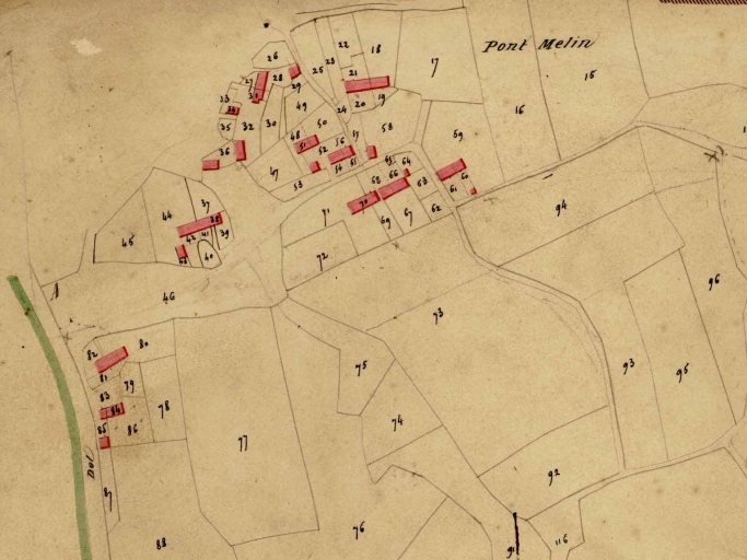 Extrait du cadastre de 1826 ; partie est du villageImmatriculation