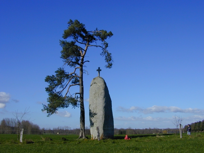 Menhir dit "La Pierre Longue de Saint-Jouan" et croix de chemin, la Butte (Cuguen),