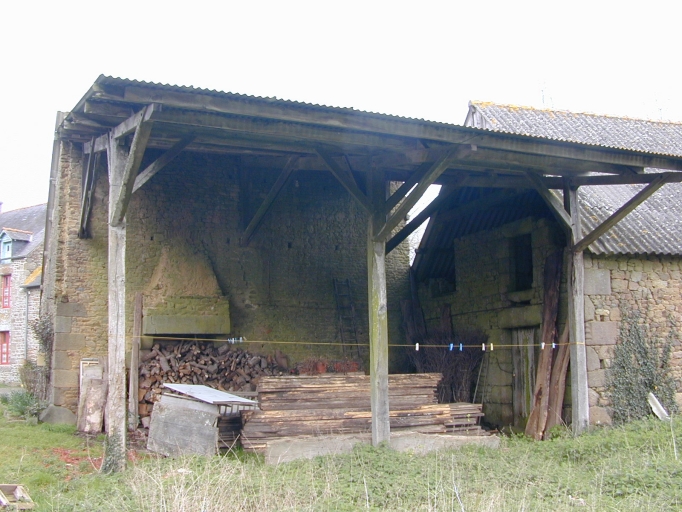 Pignon à feu d'une maison détruite et dépendance agricole : vue générale sud-ouestImmatriculation