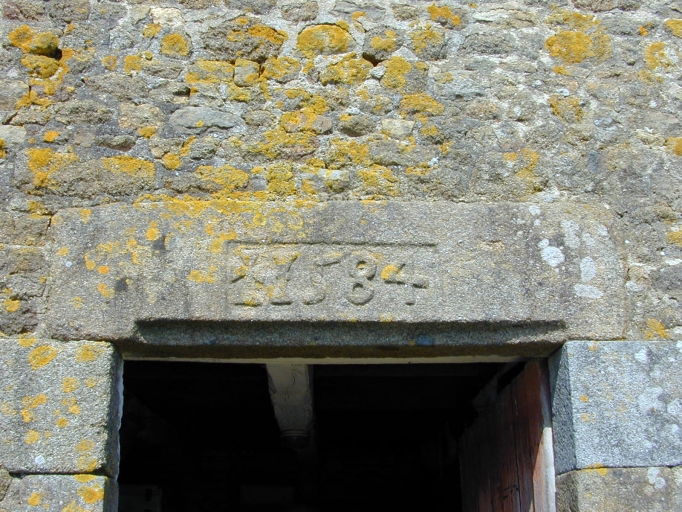 Etable ou cellier, linteau gravé d'une date provenant du logis : détailImmatriculation