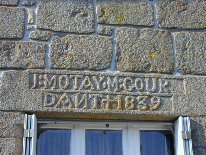 Logis, ancienne porte, linteau gravé d'une inscription : détailImmatriculation