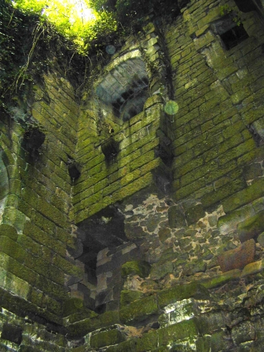 Donjon, intérieur, troisième niveau : foyer de la cheminée disparue et couloir d'accès aux latrinesImmatriculation
