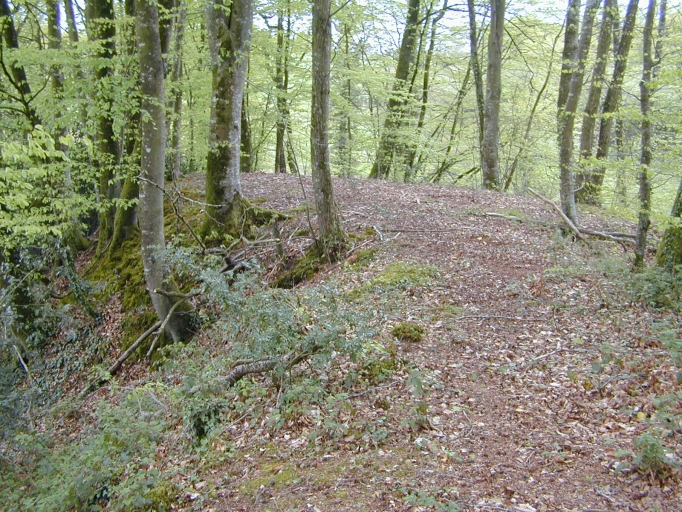 Basse-cour, soubassement en terre d'une tour de bois : vue partielle de l'assietteImmatriculation