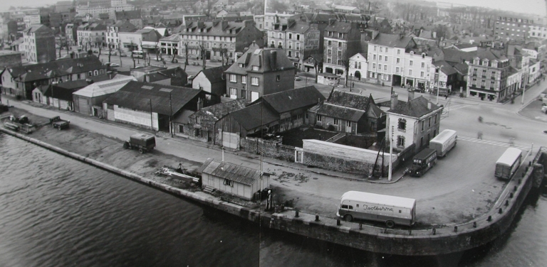 Vue du quai Saint-Cyr, au niveau de la maison éclusière, vers 1957 (A. C. Rennes)Immatriculation