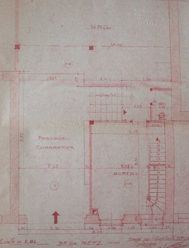 Plan du rez-de-chaussée, dessin, par Hyacinthe Perrin, [1951] (A. C. Rennes)Immatriculation