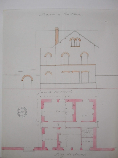 Plan du rez-de-chaussée et élévation sur rue, dessin, par J.-M. Huchet, 1862 (A. C. Rennes)Immatriculation