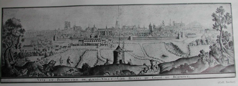 Vue perspective de la ville de Rennes du côté de Beaumont. Extrait de BANEATImmatriculation