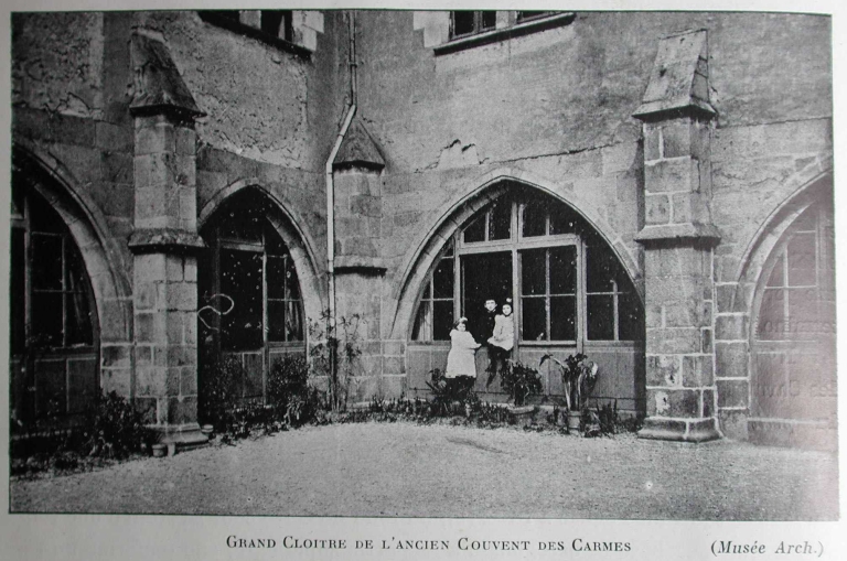 Grand cloître de l'ancien couvent des Carmes. Extrait de l'ouvrage de Paul BANEAT, Le Vieux Rennes, [1911]Immatriculation