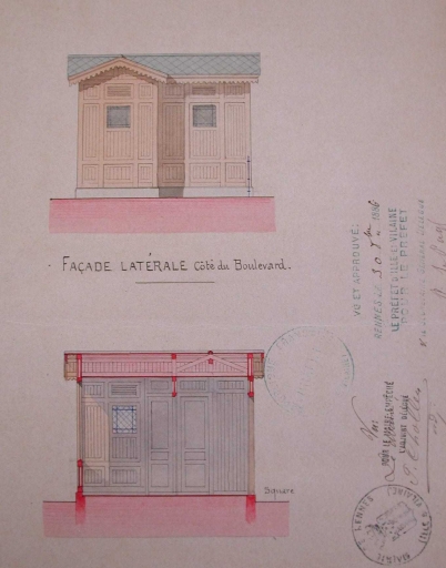 Façade latérale et coupe, dessin, Jean-Baptiste Martenot, 1886 (AC Rennes)Immatriculation