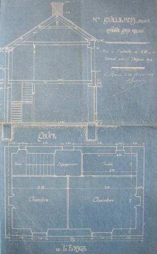 Plan de l'étage et coupe, dessin par J. Depais, 1919 (AC Rennes)Immatriculation