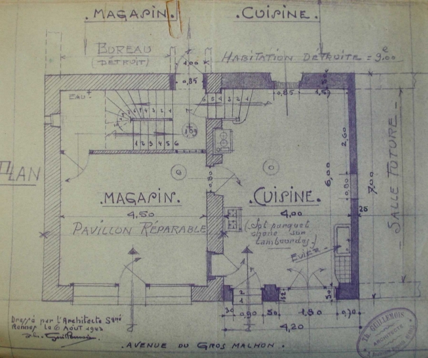Plan, par Th. Guillemois, 1943 (A. C. Rennes)Immatriculation