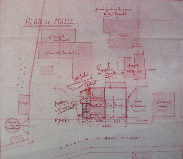 Plan de masse de la maison Brault, 32 avenue Gros-Malhon, par Th. Guillemois, 1954 (A. C. Rennes)Immatriculation