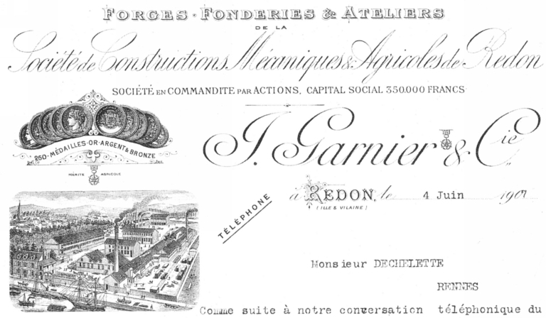 En-tête de lettre (1907). Représentation aérienne du site avec le logement patronal, à gauche. Très remanié, il est cependant encore reconnaissable à ses trois travées de deux niveaux (fig. 6).Immatriculation
