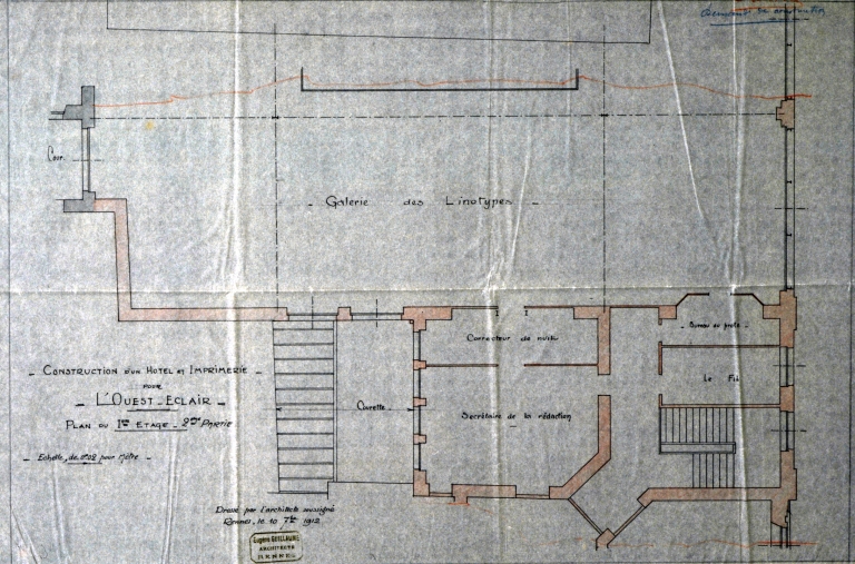 Hôtel et imprimerie Ouest-Eclair : plan du premier étage (10 septembre 1912).Immatriculation